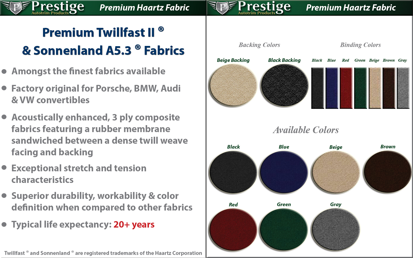 Twillfast ® and Sonnenland ® are registered trademarks of the Haartz Corporation.
